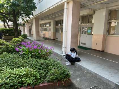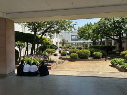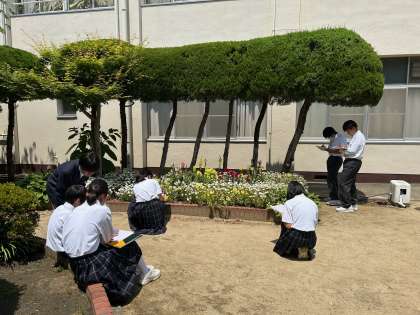 4時間目、1年生が美術科の授業で植物をスケッチしています。お天気がいいので最高です!
