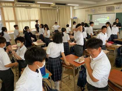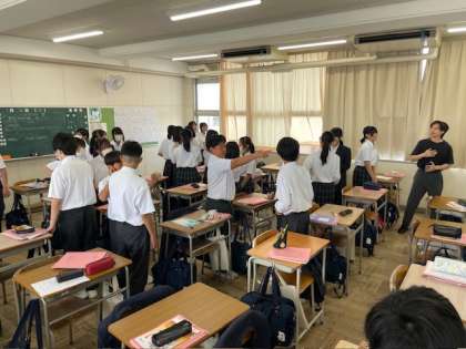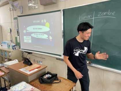 1年3組の英語の授業は、C-NETの先生がゾンビゲームをしてくれていました。