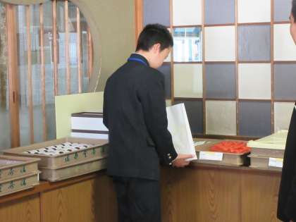 お客様が注文された商品を袋に入れる作業を教えていただきました。