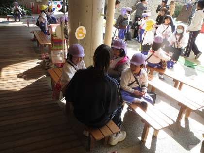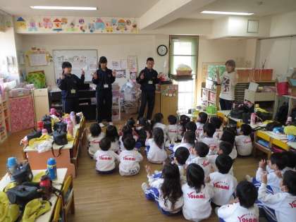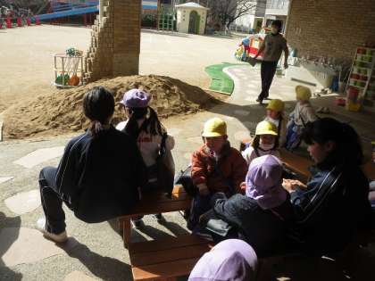 毎年、よさみ幼稚園が本校の職場体験学習に協力いただいています。今年は明日の発表会を控えて大変にお忙しい時期にもかかわらずご協力いただきました。今日は午前中で学習活動を終えて園児のみなさんが帰宅する間際でした。お迎えのお母さんを待っている園児のみなさんと本校の生徒はとてもくつろいだ表情で温かい日差しの中に一緒にいました。園児のみなさんの笑顔はとても素晴らしいです。