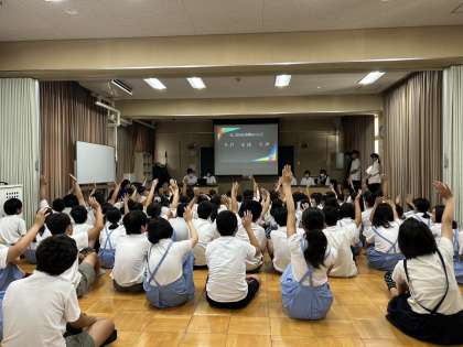 また、生徒会が現在おこなっている、ペットボトルキャップの回収も呼びかけ、SDGsについて考えてもらう、良い機会になりました。
