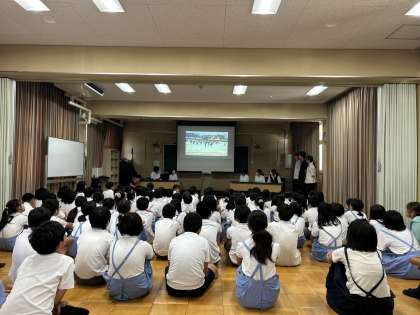 6月27日(金)に、生徒会で大領小学校に訪問しました。大領小学校の6年生に、大領中学校の学校紹介を行い、小学校との違いについて説明しました。