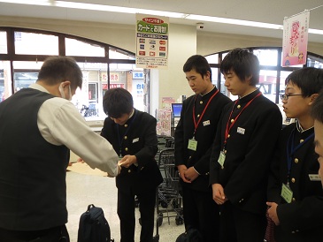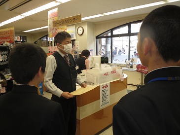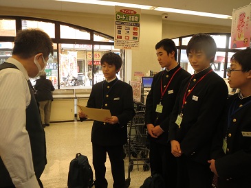 今日は2年生で今年度実施した職場体験学習のお礼のあいさつに各職場や事業所を訪問しました。写真は関西スーパーでお世話になった生徒が礼状を副店長さんに渡しているところです。最後に副店長さんからお言葉をいただきました。お世話になりありがとうございました。