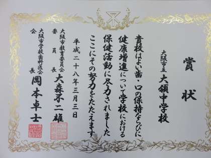 まず、今年度も「よい歯・口の保持、増進」で表彰を受けました。また卒業式の練習が昨日から始まっています。体育館前の花壇ではチューリップが咲きはじめています。練習の様子をお伝えします。