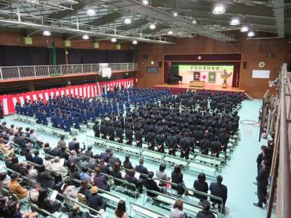 開式のことばのあと、国歌斉唱・校歌斉唱と続きました。卒業生は緊張しながらも卒業の嬉しさがその表情に満ちていました。
