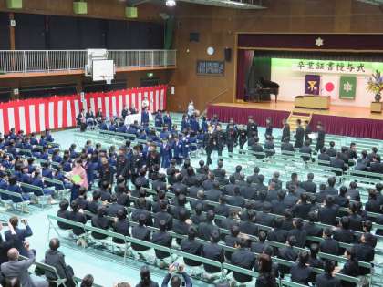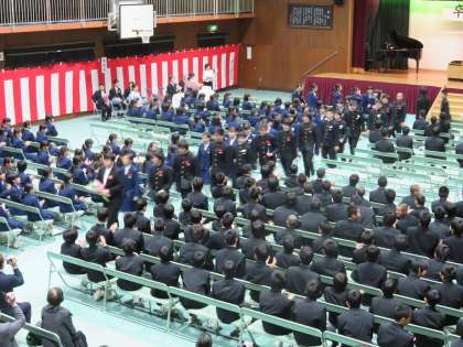 最後に卒業生保護者代表から謝辞をいただきました。ありがとうございました。その後、卒業生が式場から退出していくところです。