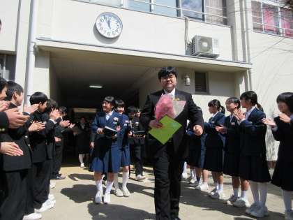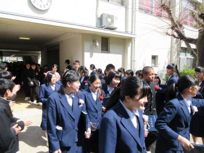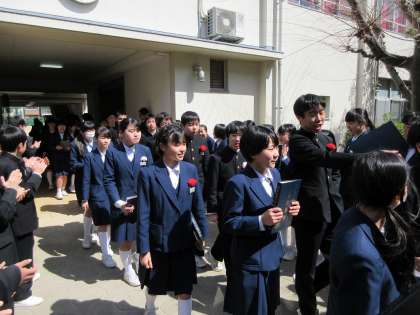 卒業生はみなさんに見送られて、いよいよ旅立ちました。おめでとうございました。
