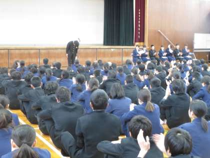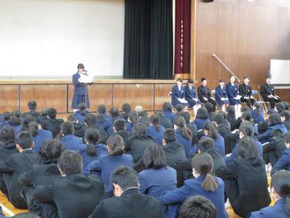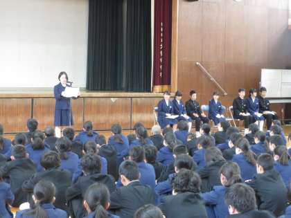 今日は6時間目に来年度の前期の生徒会役員に立候補しているみなさんの演説会と信任投票が行われました。先週に卒業式が行われ3年生が卒業しました。先輩からバトンを引き継いだ後輩の皆さんは、大領中学校をよりよくするという使命を担っています。候補者のみなさんは、それぞれに自分の抱負をしっかりと述べていました。とても好感が持てました。信任投票となりますが、立候補者の皆さんが信任されて、より良い大領中学校になるよう頑張ってもらいたいと願っています。