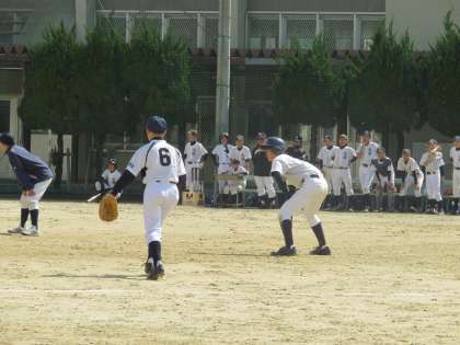 三回裏の大領の攻撃でヒットのランナーが三塁に進塁し、バントヒットでホームイン、続いて、外野への打球を相手チームがエラーしてホームイン(2点目)、さらにセンターオーバーのヒットで3点目と、走塁と相手チームのエラー、ヒットと効率よく3点を取りました。なかなか強くなったなと感じました。