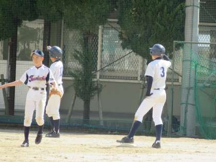 大領中学校は4回裏にも三塁に進塁して、さらにホームインして1点を取りました。ゲーム展開と写真は一致していないかもしれません。