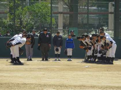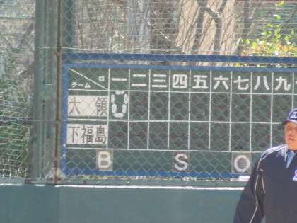 一回表、大領は二死の後、センターへヒット、二塁打となったが、次の打者がキャッチャーフライ、アウト。残念。一回裏、下福島は一死の後、レフト前ヒット。次の打者は一塁ゴロアウト、ランナーは二塁へ。次の打者にデッドボール、ランナー1・2塁となったが、次の打者がキャッチャーフライでアウト。なかなかの接戦。