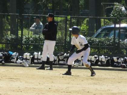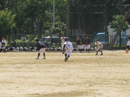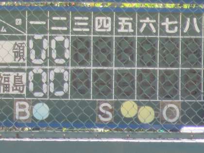 3回表、大領攻撃、先頭打者セカンドゴロ、アウト。次の打者レフト前ヒット、次の打者、ファーストフライ、アウト。ランナーは盗塁で3塁まで進むが、次の打者ショートゴロアウト。残念。なかなか得点できない。裏の下福島、先頭打者、ファーストゴロ、アウト、次の打者、ショートフライ、アウト。次の打者、フォアーボール、一塁へ。二塁に盗塁。しかし、次の打者レフトフライ、アウト。両チームともチャンスを生かせず、こう着状態。次第にどちらかチャンスを生かしたチームが勝つのではというムードになってきました。