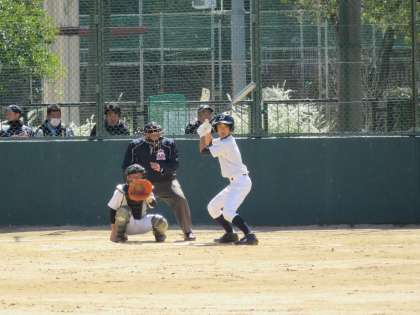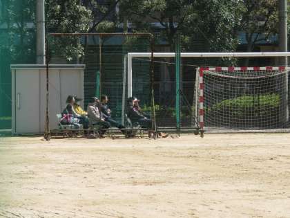 4回表、大領の攻撃、先頭打者、フォアーボール一塁へ。次の打者サードゴロ、一塁でアウト。二塁まで進塁。次の打者、三振。次の打者、ファーストゴロ。アウト。得点できず。裏の下福島の攻撃。ショートゴロ、アウト。サードフライ、アウト。次の打者、レフトオーバーの大きな当たり、幸い一塁まで。二塁に盗塁。ピンチ。次の打者、バントでアウト。よかった。よかった。