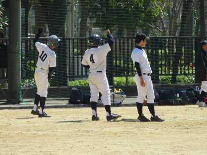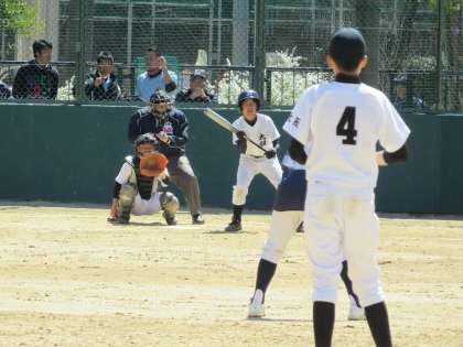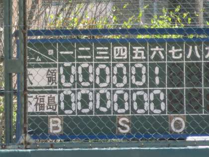 5回表、先頭打者フォアーボール一塁へ。次の打者バント失敗、次の打者ファーストゴロアウト。裏の下福島の攻撃。先頭打者フォアーボール一塁へ。次の打者セカンドゴロ、2塁でアウト。牽制球で1塁ランナーがアウト。6回表、大領の攻撃、先頭打者ピッチャーゴロ、アウト。次の打者デッドボール1塁へ。盗塁で2塁進塁。しかし、次の打者のショートゴロが走者に当たり、走者がアウト。ランナーは1塁のみ。このランナーが盗塁で2塁へ進塁。さらに盗塁で三塁へ。そこで幸運にも相手チームのエラーで待望の一点を得点。やはり攻める姿勢が勝ちにつながるということです。次の打者三振でチェンジ。6回裏下福島はサードフライ、アウト。ショートライナーアウト。三振アウト。