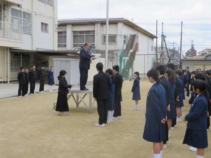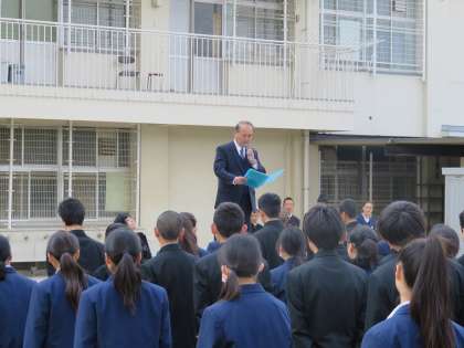 本日は修了式と生徒会役員の認証式を実施しました。修了式にあたり生徒のみなさんには、4月に入学する新入生の模範となるようしっかりと頑張ってくれるよう伝えました。大領中学校の名に恥じないようしっかりと勉強するとともに幅広い常識を身に着けた立派な人間に成長してくれることを期待しています。また、先日の生徒会選挙で信任された生徒会役員のみなさんにそれぞれ認証状を渡しました。全生徒のリーダーとして大領中学校がより良い学校となるよう頑張ってください。みなさんの頑張りに期待しています。明日から春休みとなります。春休み中に交通事故などに遭わないよう気をつけてください。新学期には新入生とともに元気に登校しましょう。