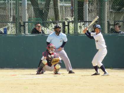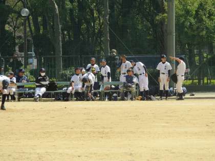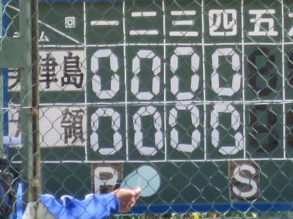 4回裏大領は第一打者キャッチァーフライでアウト、第二打者バント失敗でピッチャーフライにアウト、第三打者ピッチャーゴロでアウト、なかなか攻めきれません。4回までゼロ行進。