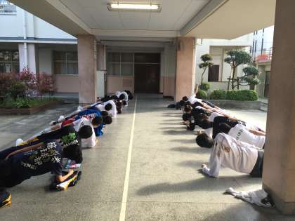 男子バスケ部は各学年バランスよく人数が揃っています。残念ながら写真を撮って回ったとき、男子バスケ部は外練の時間だったので、筋トレの様子だけになってしまいましたが、よく見てください・・・。1,2,3年生が学年に関係なく混ざった状態で並んでいるのです。仲の良さが出ているところなんですよ^^