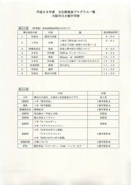文化祭のプログラムをアップします。