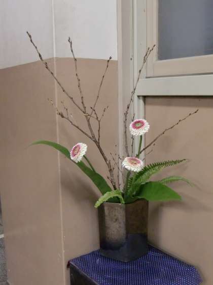 校長室と事務室前に花を生けていただきました。