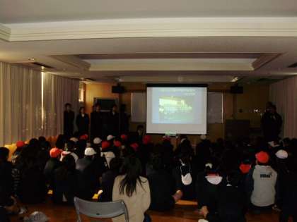 生徒会役員による学校説明を聞き、その後クラブ活動体験を行いました。