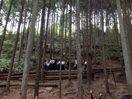 無事に貝塚に到着しました。天候は曇りですが、日差しもあり、よかったです。到着後体育館でオリエンテーションがあり、布団の敷き方、たたみ方などを教えてもらいました。その後、大縄跳び大会をしました。最初はうまく跳べなかったクラスもありましたが、練習を重ねるうちに少しずつ回数が増えました。最高で30回ほど連続で跳べたクラスもありました。美味しいお弁当を食べた後は、アスレチックで遊びました。中学生ということを忘れるくらい遊び回っていました。