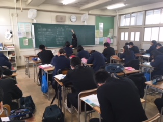 英語(アフリカの村で電気が通ったお話)の授業風景です。月曜の試験に向けて、しっかり書き取りましょう。