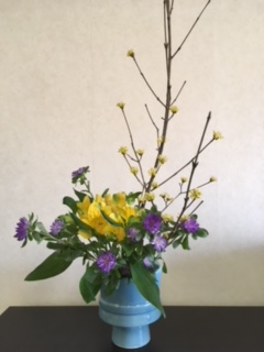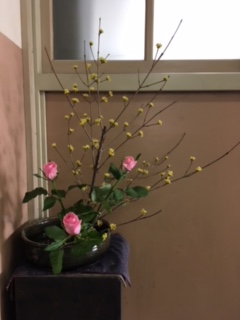 黄色いアルストロメリアと、ピンクのバラが可憐です。
