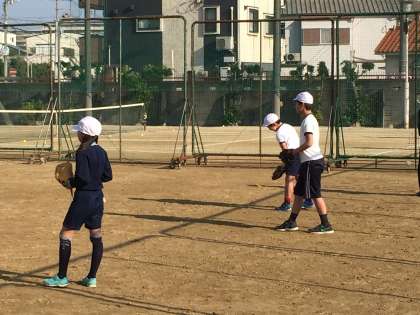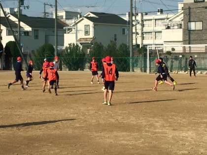 運動場での、女子テニス部、野球部、サッカー部の様子です。