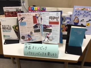 図書室に入ると、オリンピック関連の本がディスプレイされています。