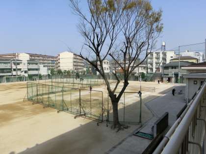 太陽が傾きかけた時刻。 テニスコートで女子生徒たちが頑張っています。