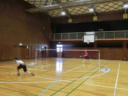 体育館では、バドミントン部が練習しています。