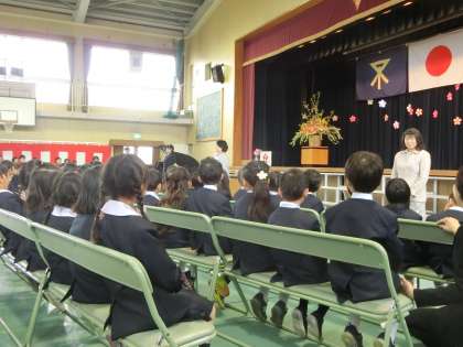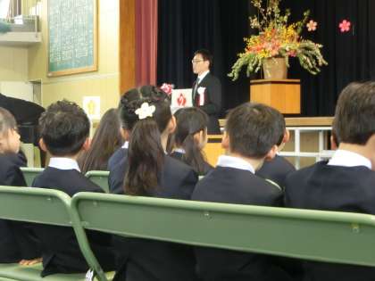 担任の先生方が紹介され、PTA会長様からお祝いの温かい言葉をいただきました。