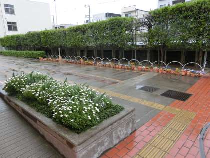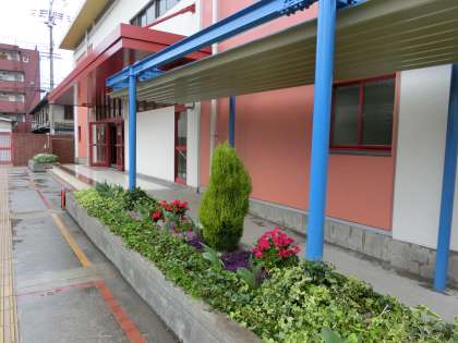 体育館の玄関もきれいに掃除していただき、花が飾られました。