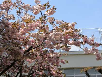 大領八重桜。入学式に花を添え、桜の下での記念撮影も多々あったようです。