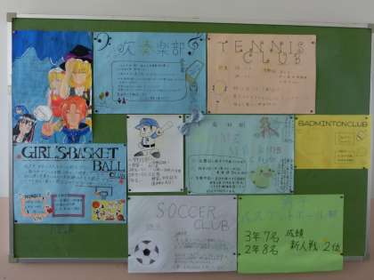 1年教室近くの掲示板に、部活動の募集ポスターが掲示されています。
