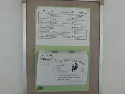 給食の献立が掲示