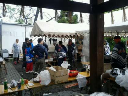 住吉中のボランティア諸君も、餅つきに売り子に、大活躍です。