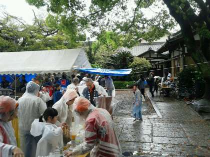 あいにくの雨の中、生根神社で、住吉の人々の熱い祭りが行われています。