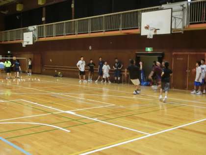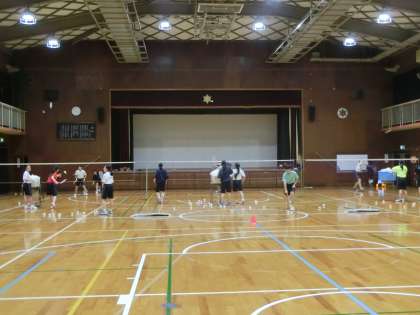 体育館では、バドミントン部、男子バスケット部が練習を行っています。