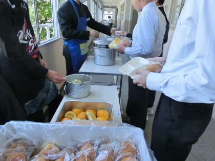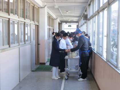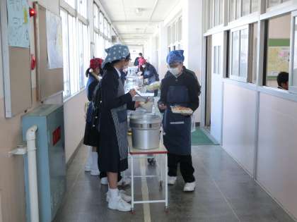 4時間目が終了し、給食の準備が始まりました。