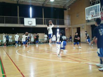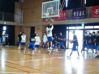 試合前の練習。相手は、十三中学校です。