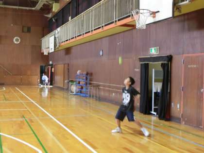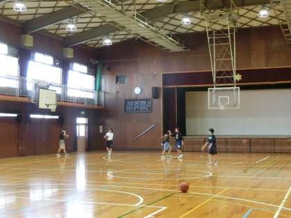 バスケットボール部が朝のシューティングに取り組んでいます。