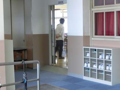 校歌が3階から2階まで響き渡っています。