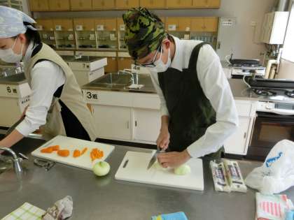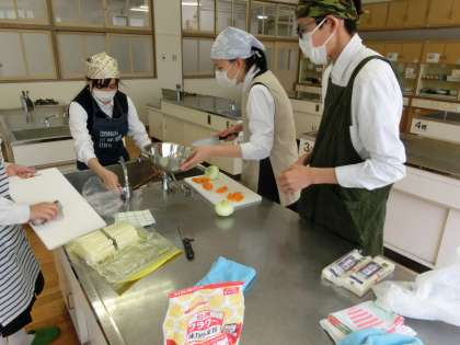 本日、家庭科部の諸君が、恒例の第一回調理実習に挑戦しました。