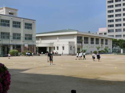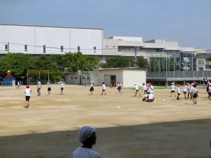 小学校は、ちょうど休み時間。児童さんはみんなグラウンドに出て、走り回っていました。