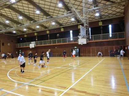 明日のベスト4がけを目前に、バスケットボール部は気合が入っています。