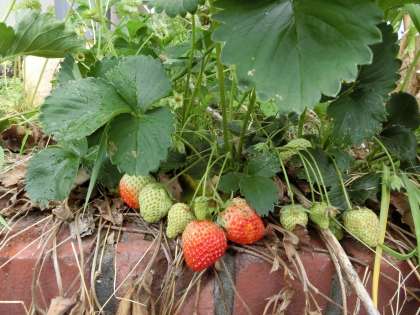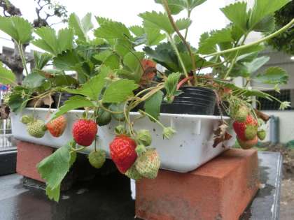 畑のイチゴが、赤く染まり始めました。