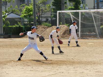 みんな声を出しながら、ピッチャーを盛り立てます。