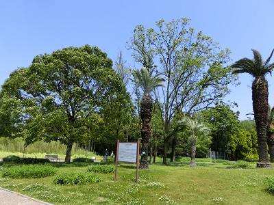 学校の中庭に見られる紫の花。