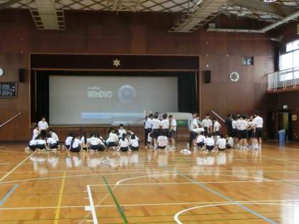 体育館で、体育大会に向けての練習です。